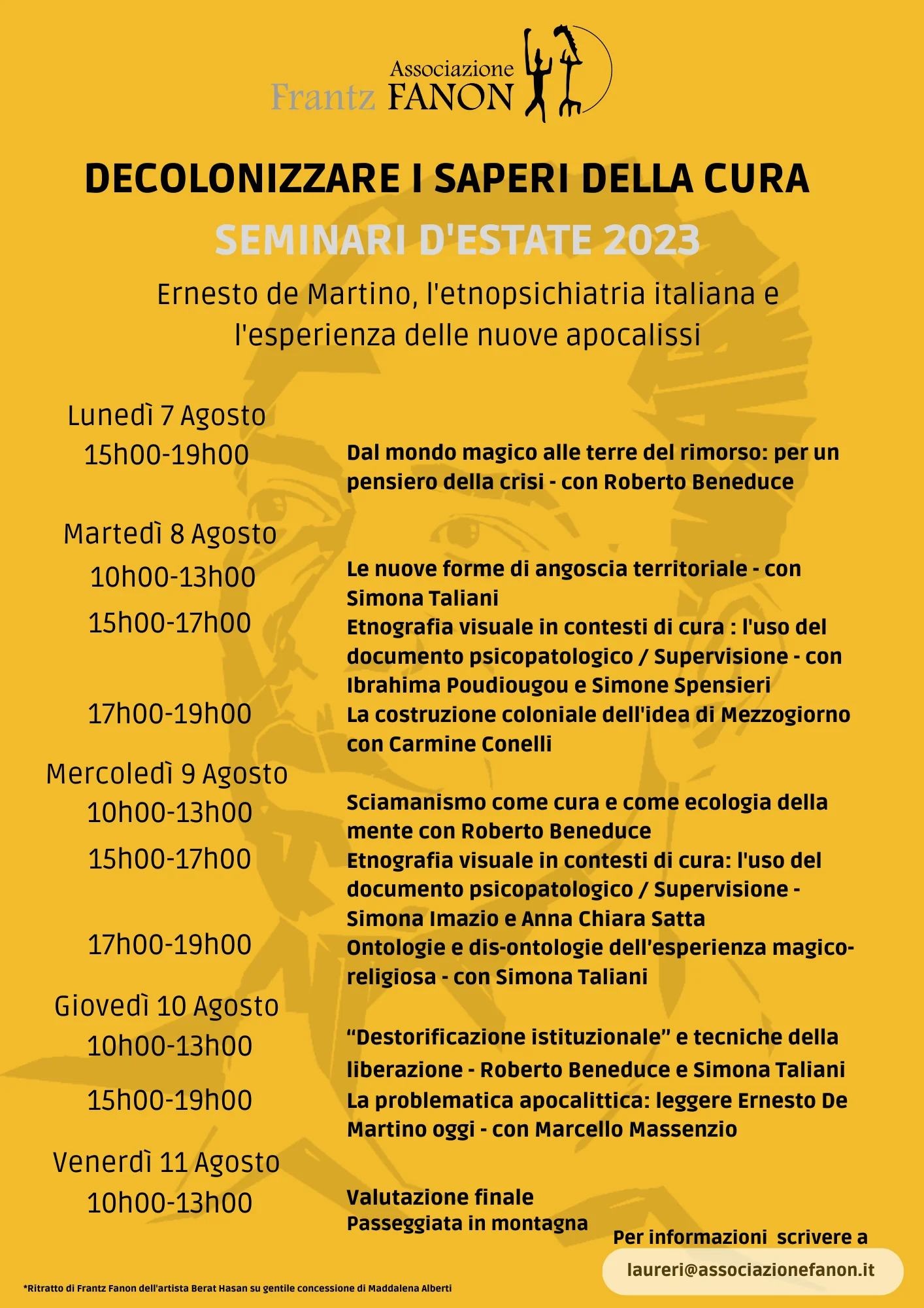 Per maggiori informazioni scrivere a laureri@associazionefanon.it