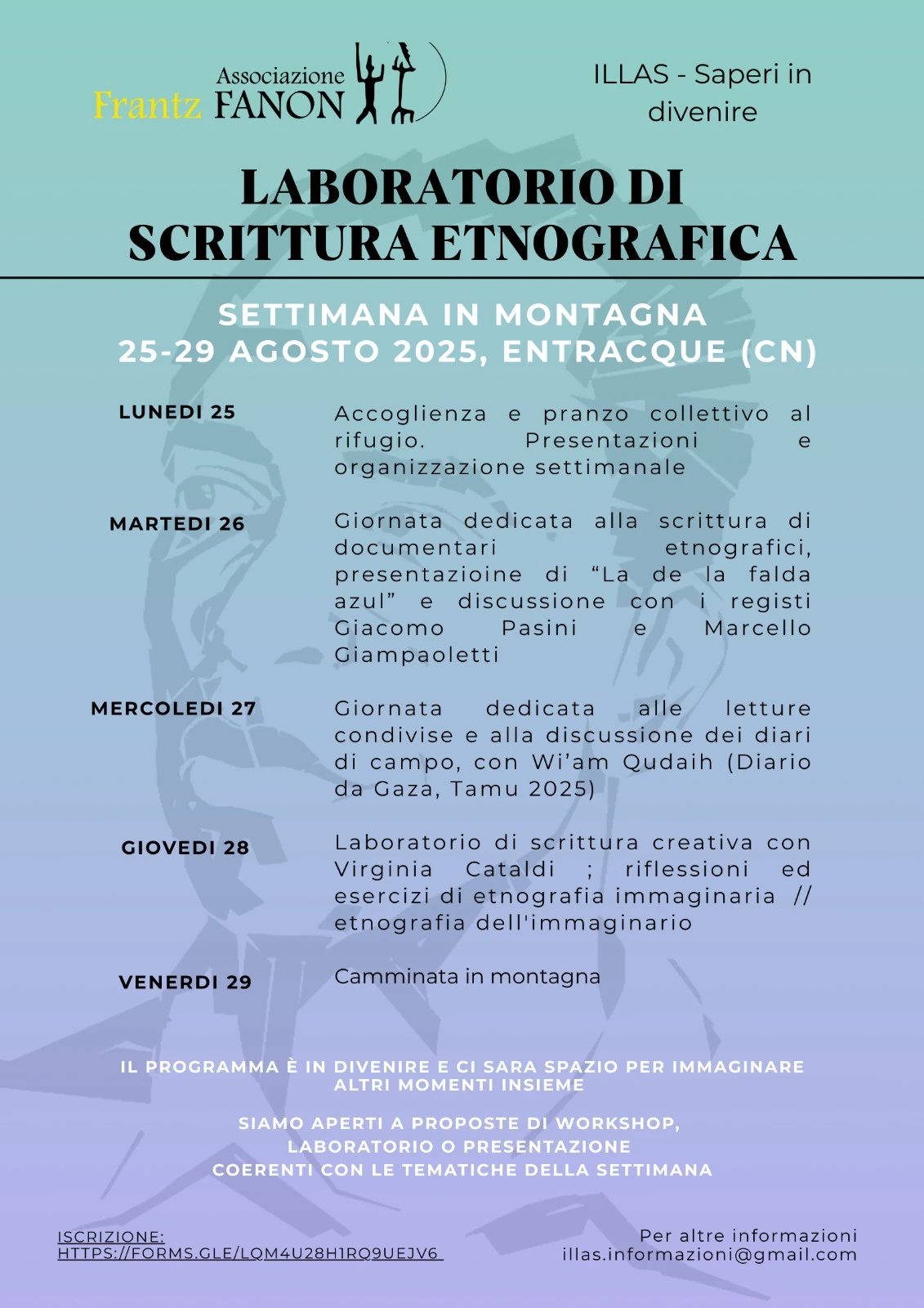 In preparazione a questi momenti di incontro e discussione sulla vitalità del pensiero fanoniano, abbiamo pensato di proporre come ogni anno dei seminari estivi a Entracque, in provincia di Cuneo.